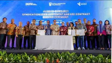 tvOnenews.com - bank bjb melakukan penandatanganan Perjanjian Kredit Pendanaan Proyek Pabrik Pusri IIIB dengan PT Pusri Palembang, melalui skema Kredit Sindikasi bersama sejumlah perbankan nasional, dengan total Rp9,3 Triliun, pada Jumat (13/10) di Ballroom The Langham Hotel Jakarta.