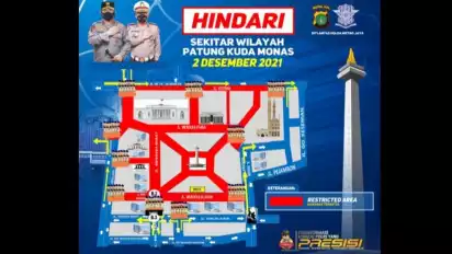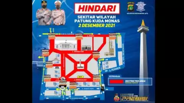 4. Penutupan dilakukan di Patung Kuda, kendaraan dialihkan ke Jalan Kebon Sirih.