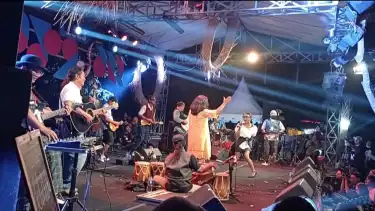 Trie Utami saat kolaborasi dengan Sinten Remen (Foto: Bajo Winarno)