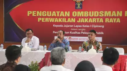 Jakarta, tvOnenews.com - Lembaga Pemasyarakatan (Lapas) Kelas I Cipinang mendapat penguatan dari Ombudsman RI Perwakilan Jakarta Raya pada Rabu, (22/11/2023) di aula gedung 2 Lapas Kelas I Cipinang.