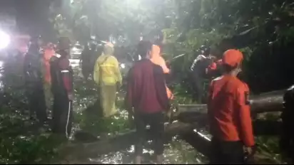 "Kami sedang jalan ke lokasi titik pohon yang tumbang. Semua kami kerahkan untuk menangani ini, mudah-mudahan cepat tertangani," tutur Khaerul.