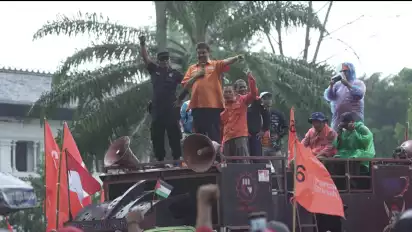 tvOnenews.com - Presiden Partai Buruh yang juga Presiden KSPI Said Iqbal menjelaskan, puluhan ribu buruh melakukan aksi di Gedung Sate, Jawa Barat, Selasa (28/11/2023).