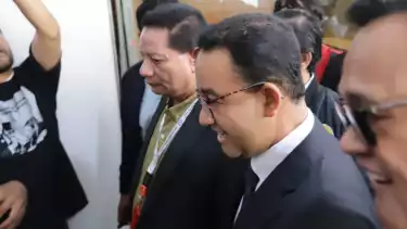 Berdasarkan pantauan tim tvOnenews.com di lapangan, Anies tiba di lokasi sekitar pukul 13.53 WIB yang didampingi oleh Co-captain Timnas Pemenangan AMIN, Sudirman Said.