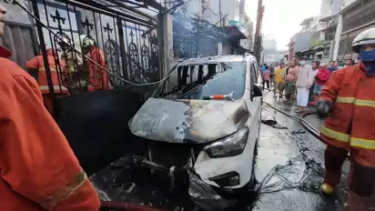 Sementara itu saksi menuturkan, kebakaran yang menghabisi dua rumah dan satu mobil ini terjadi mulai pukul 03.30 WIB. Api pertama kali terlihat di lantai bawah.