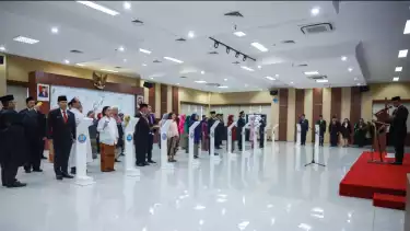 tvOnenews.com - Kepala Biro Sumber Daya Manusia Aparatur dan Organisasi Settama Badan Narkotika Nasional (BNN RI), M. Zainul Muttaqien, S.H., S.I.K., M.A.P., memimpin upacara pelantikan dan pengambilan sumpah jabatan di Gedung BNN RI Pusat, Jakarta, Jumat (29/12). Sebanyak 209 pegawai baru resmi dilantik, termasuk 1 Kasubdit dan 208 pejabat fungsional dengan berbagai spesialisasi.