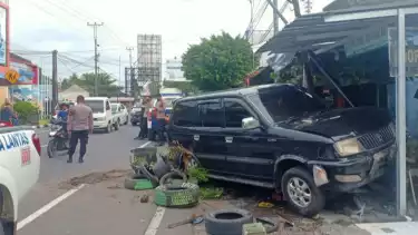 "Mobil yang tak terkendali sempat menabrak halte bus dan baru terhenti ketika menabrak tiang telepon dan menabrak kios tambal ban di tepi jalan." kata AKP Purwanta, Jumat (10/12/2021).