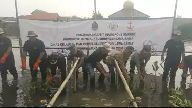 Bekasi, tvOnenews.com - Dinas Kelautan dan perikanan (DKP) Provinsi Jawa Barat bersama PT Tunas Ruang Pelabuhan Nusantara (TRPN) mengajak masyarakat Kecamatan Tarumajaya, Kabupaten Bekasi menanam bibit mangrove.
