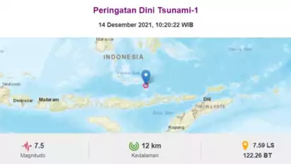 NTT - Gempa bumi dengan magnitudo (M) 7.5 mengguncang barat laut Larantuka,Nusa Tenggara Timur (NTT) pada pukul 10.20 WIB. Badan Meteorologi, Klimatologi, dan Geofisika (BMKG) mengeluarkan peringatan dini tsunami untuk wilayah Maluku, NTB, NTT, Sulawesi Selatan (Sulsel), dan Sulawesi Tenggara (Sultra). Mereka juga menyatakan 14 daerah berstatus siaga dan 7 lainnya berstatus waspada.