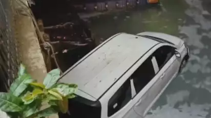 Pengemudi Salah Injak Pedal Saat Parkir, Dua Kendaraan Tercebur ke dalam Kali di Palmerah