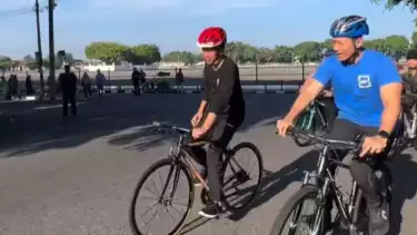 Jakarta, tvOnenews.com - Presiden Joko Widodo (Jokowi) bersepeda bersama Ketua Umum Partai Demokrat Agus Harimurti Yudhoyono (AHY) di Yogyakarta, Minggu (28/1/2024), sambil menyapa masyarakat.