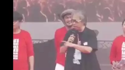 Jakarta, tvOnenews.com - Seniman monolog Butet Kartaredjasa menghadiri acara kampanye terbuka bertajuk Hajatan Rakyat untuk pemenangan pasangan capres-cawapres nomor urut 03 Ganjar Pranowo-Mahfud MD di Alun Alun Wates Kulon Progo, Yogyakarta Minggu (28/1/2024).
