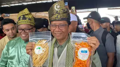 "Saya sudah lihat hasil UMKM hasil ibu-ibu yang dikemas bagus. Inilah perlunya progresif yang katanya di Indonesia UMKM itu ada 65 juta luar bisa. Kalau bisa dikerjakan secara progresif sungguh-sungguh dan terus berkemajuan dari waktu ke waktu maka insya allah ekonomi di Indonesia akan tumbuh bukan hanya karena suntikan dan pinjaman dana dari luar negeri," tutur Mahfud.