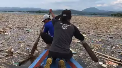 Dalam video versi full di YouTube berdurasi 1 menit 29 detik itu memperlihatkan dua orang mendayung perahu di tengah lautan sampah. Kanan dan kiri, tampak luasnya area permukaan waduk yang tertutup berbagai jenis sampah itu. Ada sampah plastik, sampah rumah tangga, potongan kayu, pecahan batang bambu, dan lain-lain.