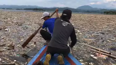 Video Waduk Jatigede Sumedang dengan kondisi penuh sampah, viral di media sosial twitter dalam beberapa hari terakhir. Dalam video yang diunggah akun @wildwater_id, tampak sebuah perahu serta dua orang pria yang sedang mendayung di area air penuh sampah.