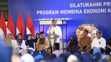 tvOnenews.com - Kedatangan Presiden Jokowi disambut semangat 5.000 nasabah PNM Mekaar dan tenaga pendamping atau Account Officer (AO), didampingi oleh Menteri BUMN Erick Thohir dan Menteri PUPR Basuki Hadimuljono di Lapangan Pallantikang, Kabupaten Maros, Sulawesi Selatan.