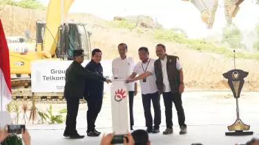 tvOnenews.com - Sebagai upaya untuk mendukung percepatan pembangunan Ibu Kota Nusantara (IKN), PT Telkom Indonesia (Persero) Tbk (Telkom) siap membangun gedung Telkom Smart Office, yang ditandai dengan simbolis peletakan batu pertama atau groundbreaking oleh Presiden Republik Indonesia Joko Widodo, di kawasan Ibu Kota Nusantara (IKN), Penajam Paser Utara, Kalimantan Timur pada Jumat (1 Maret 2024).