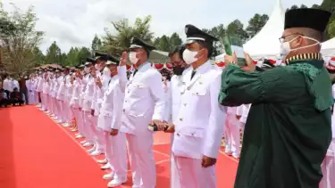 Para kades yang dilantik hasil Pemilihan Kepala Desa (Pilkades) serentak di Kabupaten Tapanuli Utara, Sumatera Utara yang berlangsung pada Rabu 23 November 2021 lalu.