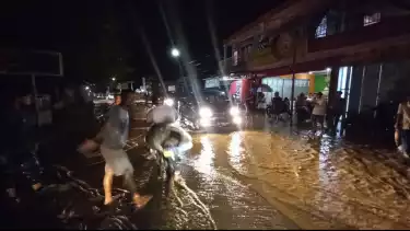 Sukabumi, Jawa Barat - Hujan deras yang mengguyur wilayah Palabuhanratu, Kabupaten Sukabumi mengakibatkan debit air Sungai Cangehgar meningkat dan meluap hingga membanjiri Dermaga Perikanan Palabuhanratu dan pemukiman warga,sedikitnya sebanyak 34 rumah warga terendam hingga 30 cm pada Pada Kamis (23/12/2021) malam.