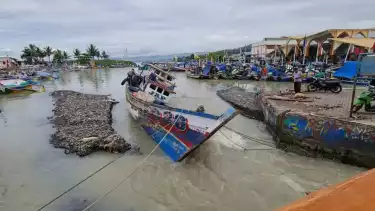 Sukabumi, Jawa Barat - Kawasan Pelabuhan Perikanan Nusantara Palabuhanratu (PPNP) atau Dermaga Palabuhanratu yang berada di Kelurahan Palabuhanratu, Kabupaten Sukabumi mengalami sejumlah kerusakan, Jumat (24/12/2021) setelah banjir yang menerjang kawasan tersebut pada Kamis (23/12/2021) sore. Selain itu, banyak perahu nelayan ikut rusak bahkan ada yang terdampar.