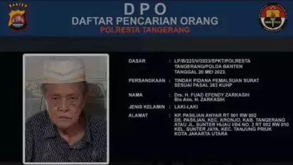 tvOnenews.com - Pengusaha asal Kampung Pasilian Anyar RT 001 RW 002 Desa Pasilian, Kecamatan Kronjo, Kabupaten Tangerang, H Fuad Effendy Zarkasih kini menjadi buronan polisi dengan kasus dugaan tindak pidana pemalsuan surat.