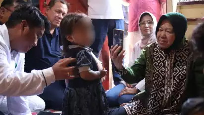 Kondisi tersebut ditemukan oleh tim scanning Kementerian Sosial. Menteri Sosial Tri Rismaharini pun menyempatkan diri untuk melihat langsung kondisi sang anak dan juga keluarganya.