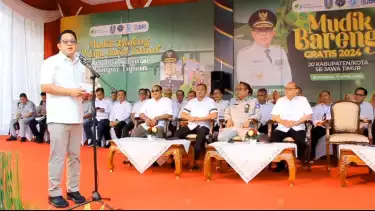 "Dalam kegiatan Mudik Gratis yang dilaksanakan Pemprov jatim ini, Jasar Raharja ikut berpartisipasi dengan menyediakan 10 armada bus, deengan 3 daerah tujuan, yakni Madiun,Ponorogo, dan Tulungagung," terang Tamrin Silalahi, Kepala PT Jasa Raharja cabang Utama Jawa timur.