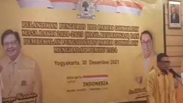 Yogyakarta, DIY - Nama Ketua Umum Golkar, Airlangga Hartarto semakin menguat dalam bursa Calon Presiden (Capres) 2024. Airlangga mendapat dukungan dari seluruh kader dan simpatisan Golkar Se-DIY dan Jawa Tengah. Dukungan tersebut disampaikan dalam rapat dan konsolidasi internal Partai Golkar yang digelar di Hotel Saphir Yogyakarta, Kamis (30/12/2021). Rapat juga seklaigus dilakukan untuk menguatkan pemenangan Pilpres 2024 dengan membentuk fungsionaris pemenangan Pemilu.