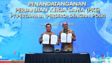 tvOnenews.com - Pertamina dan Badan Pemelihara Keamanan (Baharkam) Kepolisian Republik Indonesia (Polri) menandatangani perjanjian kerja sama tentang bantuan pengamanan dan penanganan pelanggaran dan/atau tindak pidana di objek vital nasional strategis dan objek vital lainnya di lingkungan Pertamina. Perjanjian tersebut ditandatangani di Surabaya, pada Selasa, 7 Mei 2024.