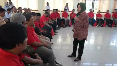Menteri Sosial Tri Rismaharini  berdialog dengan 25 mitra deradikalisasi (mitra derad) di Balai Besar Pendidikan dan Pelatihan (BBPPKS) Yogyakarta.