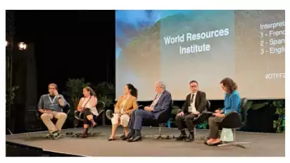 Disamping Rasio Ridho Sani, pembicara lainnya adalah Tasso Azevedo (General Coordinator, MapBiomas), Christian Samper (Managing Director and Leader of Nature Solutions, Bezos Earth Fund), Jamal Annagylyjova (CBD Secretariat), dan Joana Faggin (Senior Researcher and team manager Deforestation-free Supply Chains, AidEnvironment) beserta Mikaela Weisse (Director Global Forest Watch, WRI).
