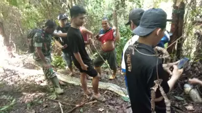 Luwu, tvOnenews.com - Suriaty (30) warga Desa Siteba, Kecamatan Walenrang Barat, Kabupaten Luwu, Sulawesi Selatan tewas setelah ditelan ular piton sepanjang enak meter.