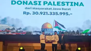 tvOnenews.com - Badan Amil Zakat Nasional (BAZNAS) RI menerima infak kemanusiaan untuk Palestina dari masyarakat Jawa Barat (Jabar) sebesar Rp30.921.335.995.