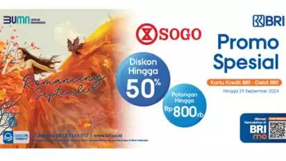 BRI Tebar Promo Spesial, Diskon hingga Rp850 Ribu di Sogo Department Store Sepanjang September 2024