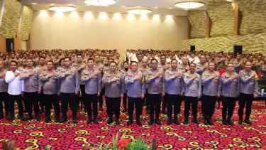 Sebanyak 750 personel mengikuti kegiatan penguatan kepada Satker pelaksana kegiatan rutin yang ditingkatkan (KRYD) terkait Nusantara Cooling System di Ballroom Novotel, Bandar Lampung, Kamis (19/9/2024). Turut hadir Kapolda Lampung Irjen Pol Helmy Santika dan seluruh pejabat Utama.