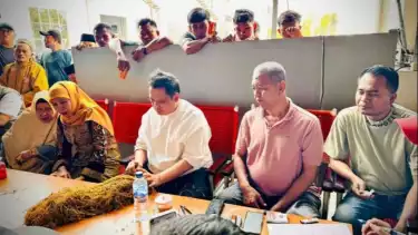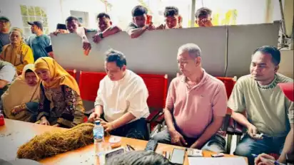 tvOnenews.com - Calon Gubernur Jawa Timur 2024 Khofifah Indar Parawansa menemui petani di gudang tembakau PT. Bawang Mas Group di Jalan Raya Trasak, Desa Peltong, Kecamatan Larangan.