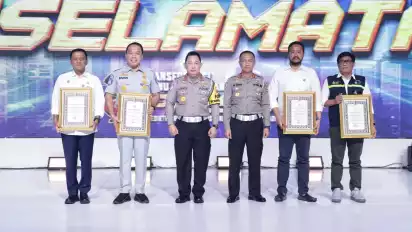tvOnenews.com - Jasa Raharja menerima piagam penghargaan dari Kapolri Jenderal Listyo Sigit Prabowo sebagai apresiasi atas kerja sama, kolaborasi, dan dukungannya dalam mewujudkan keamanan, keselamatan, ketertiban, dan kelancaran lalu lintas (Kamseltibcarlantas) melalui pencanangan Hari Keselamatan Lalu Lintas dan Angkutan Jalan.