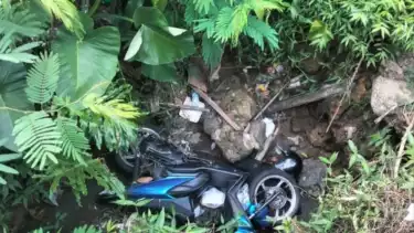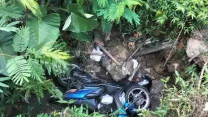 Diduga hilang kendali sehingga korban dan sepeda motornya terjun ke parit sedalam empat meter yang berada di bahu jalan sebelah kiri.