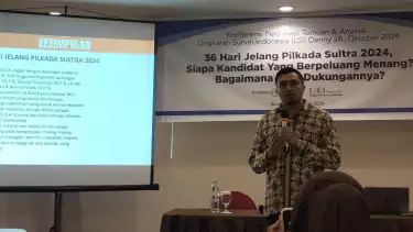 Kendari, tvOnenews,com - Menjelang Pilkada 2024, salah satu kriteria calon gubernur yang dianggap paling penting bagi masyarakat Sulawesi Tenggara (Sultra) adalah bersih dari isu korupsi. Menurut survei, sebesar 94.2 % masyarakat menyatakan sangat setuju atau cukup setuju bahwa calon gubernur harus bersih dari korupsi. Hanya 2.2 % saja yang menyatakan tidak setuju. Dan sisanya tidak menjawab atau tidak tahu.