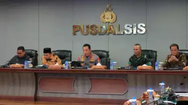 tvOnenews.com - Kapolri Jenderal Polisi Drs. Listyo Sigit Prabowo, Kasum TNI Letjen Richard Tampubolon, Ketua KPU RI Mochammad Afifuddin, Ketua Bawaslu RI Rahmat Bagja, dan Ketua DKPP RI Heddy Lugito melakukan video conference (vicon) persiapan Pilkada Serentak 2024.