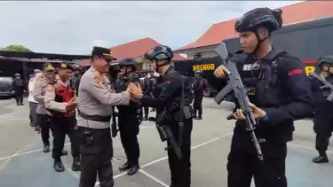 Palopo, tvOnenews.com - Polres Palopo menggelar apel pelepasan personel BKO Brimob Batalyon D Pelopor Baebunta di Lapangan Apel Mapolres Palopo, Jalan Opu Tosappaile, Kamis, (12/12/2024).