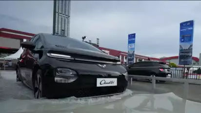 Pengalaman test drive semakin menarik dengan berbagai tantangan seperti uji ketahanan air pada mobil listrik, simulasi parkir mundur, serta melewati polisi tidur untuk menguji kenyamanan dan ketangguhan kendaraan.