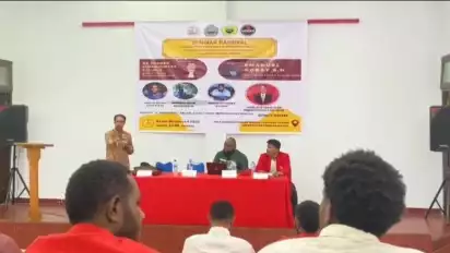 Hadir sebagai pembicara, Dekan III FEB Universitas Cendrawasih, Daniel Ayub Dawan, Dosen Tata Negara Universitas Cendrawasih, Dr. Josner Simanjutak, dan praktisi hukum, Emanuel Gobay.