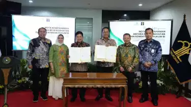tvOnenews.com - BPJS Kesehatan dan Kementerian Hukum (Kemenkum RI) jalin kerja sama strategis melalui penandatanganan Nota Kesepahaman. Nota Kesepahaman ini menjadi pedoman serta dasar kerja sama antara kedua lembaga dalam rangka mengoptimalkan penyelenggaraan Program Jaminan Kesehatan Nasional (JKN), khususnya dalam meningkatkan partisipasi pemohon pelayanan administrasi hukum umum dan pelayanan kekayaan intelektual terhadap program tersebut.