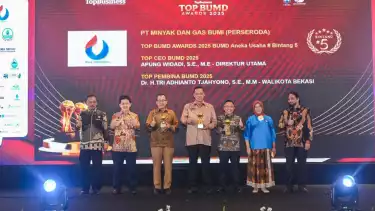 Selain itu, Apung juga meraih penghargaan Top CEO BUMD 2025. Wali Kota Bekasi Tri Adhianto pun turut mendapat penghargaan sebagai Top Pembina BUMD 2025.
