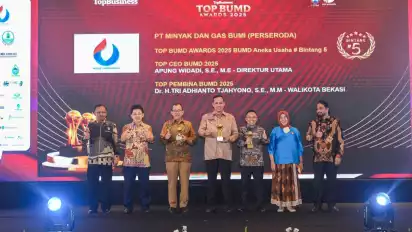 Jakarta, tvOnenews.com - PT Minyak dan Gas Bumi atau PT Migas (Perseroda) menyabet penghargaan Top BUMD Awards 2025.