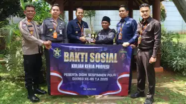 Jakarta, tvOnenews.com - Peserta Didik Pimpinan Menengah (Sespimmen) Polri Dikreg ke-65 Gelombang 1 Tahun Anggaran 2025 melakukan kegiatan bakti sosial dalam pelaksanaan kegiatan Kuliah Kerja Profesi (KKP).