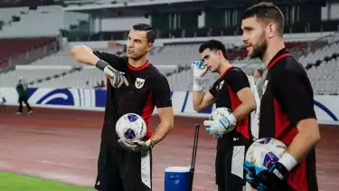 Seluruh kiper Timnas Indonesia serius ikuti latihan resmi di Stadion Utama Gelora Bung Karno (SUGBK), Jakarta, Rabu (4/6). (Foto: tvOnenews.com/Taufik Hidayat)
