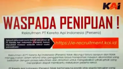 "Kami tegaskan rekrutmen resmi KAI hanya dilakukan melalui website resmi perusahaan di alamat rekrutmen.kai.id," katanya.
