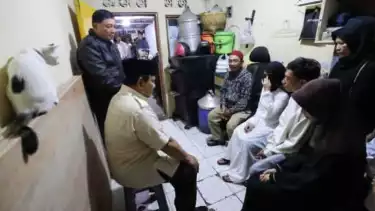 Prabowo tiba di kediaman keluarga Affan di Jalan Blora, Jakarta Pusat, sekitar pukul 21.50 WIB dengan mengenakan peci hitam. Ia menyalami warga sekitar sebelum masuk ke rumah duka.