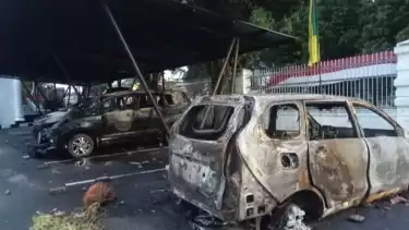 Tidak puas dengan aksinya, sekelompok massa langsung membakar mobil yang terpakir di halaman depan kantor. Tiga mobil terbakar dalam peristiwa itu, satu di antaranya merupakan kendaraan operasional milik jurnalis yang tengah meliput.